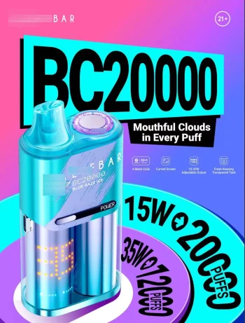 The Elf Bar BC20000 can reach up to 20000 puffs. It delivers a 35w peak output with four mesh coils, ensuring dense vapor for a superior mouthfeel. The BC20000 is designed to satisfy your cravings with a plethora of tantalizing Elf Bar flavors. Crafted with precision and passion, the BC20000 combines cutting-edge technology with an array of mouthwatering flavors, ensuring every puff is a journey of indulgence. From the moment you take your first draw, you’ll be transported to a flavor paradise, where each inhale is a symphony of taste sensations.