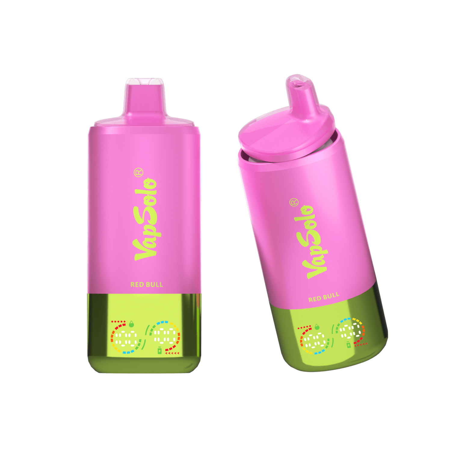 LCD display showing puff count, battery life, and active flavor